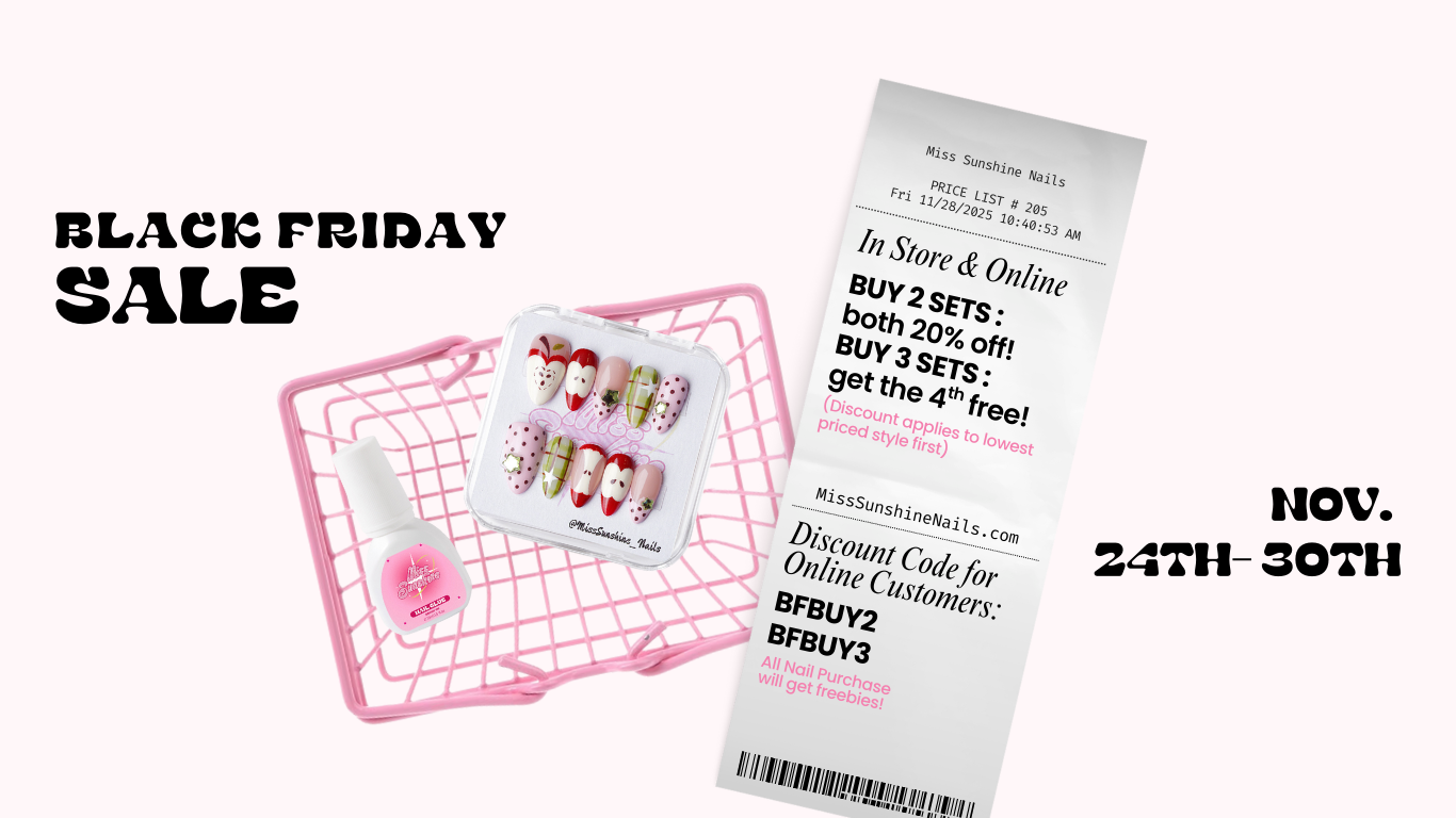 Miss Sunshine is a small business press on nail shop founded by Sunny Song. Specializes in hand made intricate designs. Focusing on beauty products that make every customer feel feminine, beautiful, and classy.